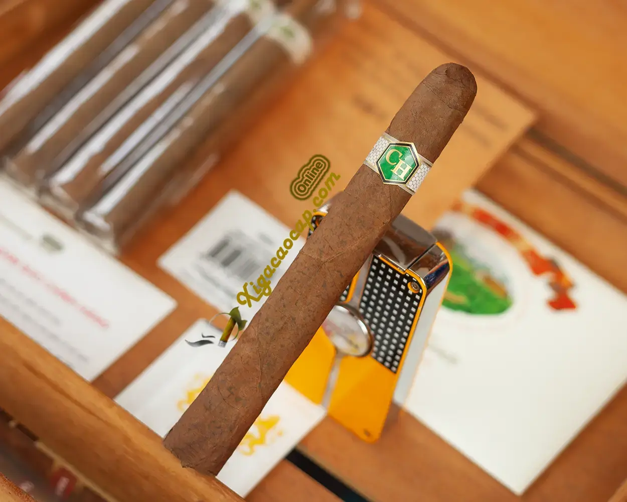 Sản phẩm sử dụng lớp lá gói (wrapper) Sumatra mịn màng, kết hợp cùng lõi lá từ những vùng nguyên liệu danh tiếng. Cách cuốn điếu đạt chuẩn phong cách Cuba giúp điếu thuốc có độ thông thoáng hoàn hảo, tạo ra lượng khói dày, mượt mà – đặc trưng của những dòng xì gà mini và xì gà lẻ thượng hạng mà các tín đồ luôn tìm kiếm.